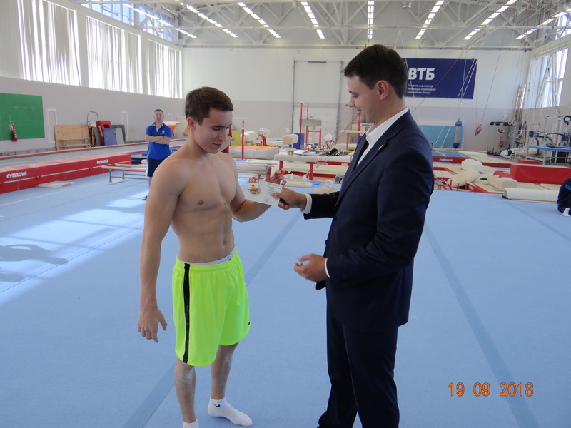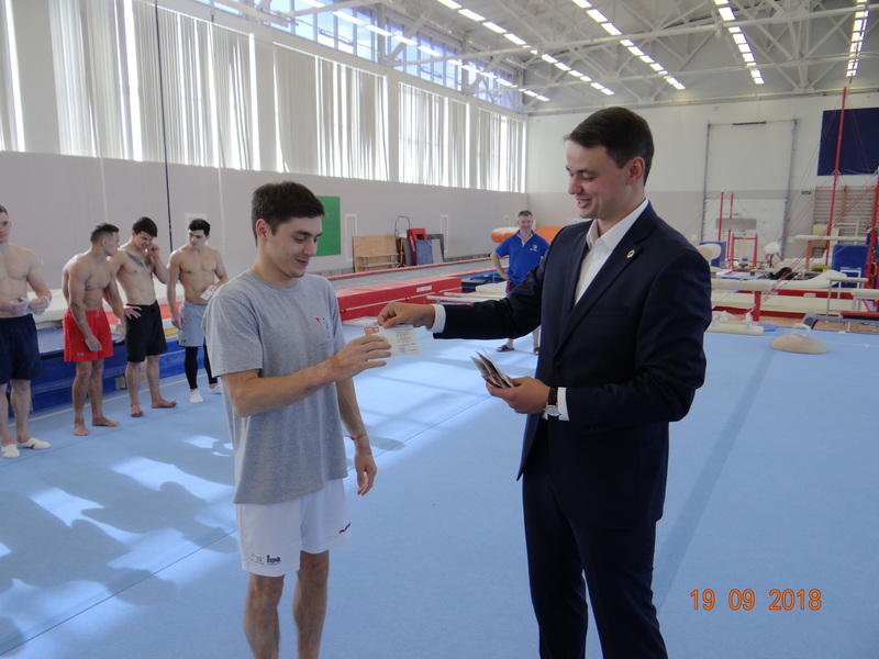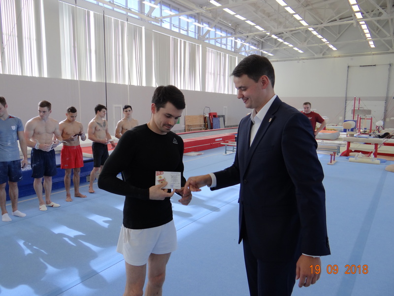 Вручение значков ГТО членам сборной команды страны по спортивной гимнастике