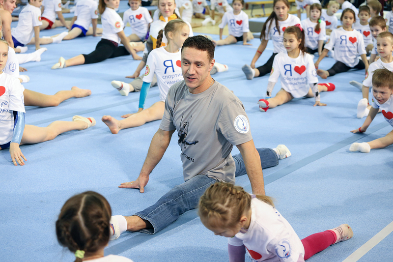 Звездная команда спортсменов сначала провела зарядку, а потом, распределившись по спортивным снарядам, на протяжении 2 часов не давала спуску ребятам от 5 до 15 лет. Чтобы публика не скучала и осознанно следила за мастер-классом, упражнения комментировали профессионалы.