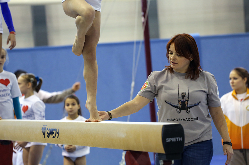 - Сейчас выполняются прыжки вперед, вбок, спиной вперед для того, чтобы научить детей прыгать, работать стопой, чтобы был крепкий голеностопный сустав… Вот юные гимнасты идут на руках. Каждый гимнаст должен уметь ходить на руках так же, как на ногах – это визитная карточка, – комментировали зрителям вольные упражнения с Еленой Замолодчиковой.