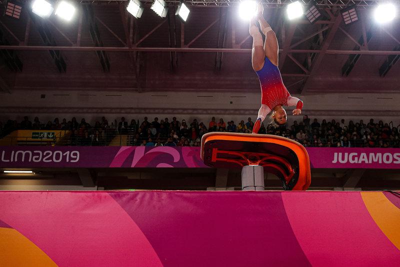 Вопорном прыжке гимнастический конь использовался до2001 года. Всоревнованиях женщин снаряд стоял поперек.