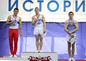 Куксенкова Николая, победившего в упражнении на коне/махи Стретовича Ивана, занявшего 2 место в упражнении коне/махи Игнатьева Никиту, занявшего 3 место в упражнении на коне/махи
