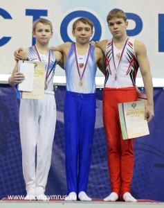 Нагорного Никиту с серебряной медалью в упражнении на кольцах