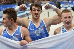 Российские гимнасты Давид Белявский, Николай Куксенков и Денис Аблязин (слева направо)
